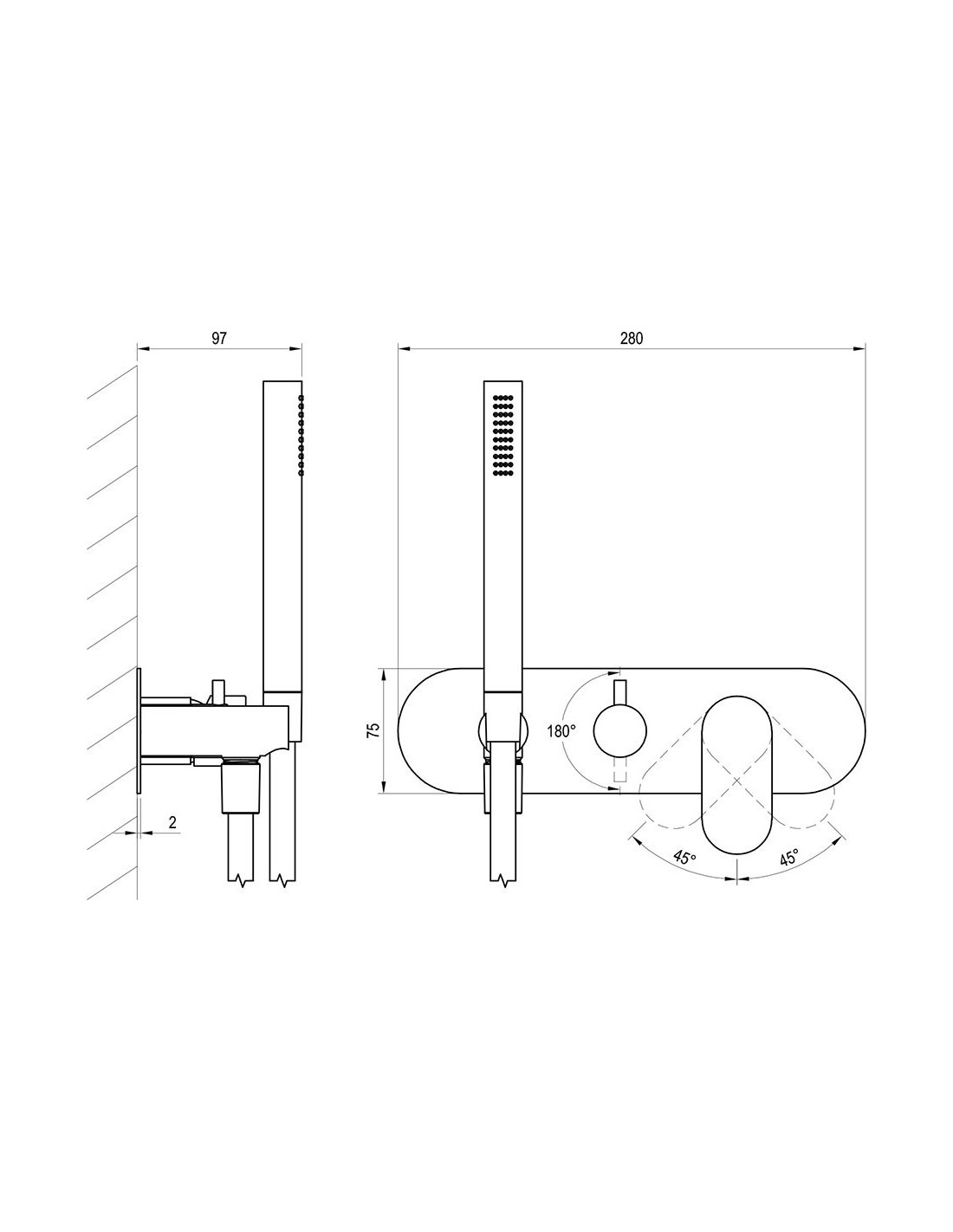 - dušo kabinoms, su viršutiniu ir rankiniu dušu