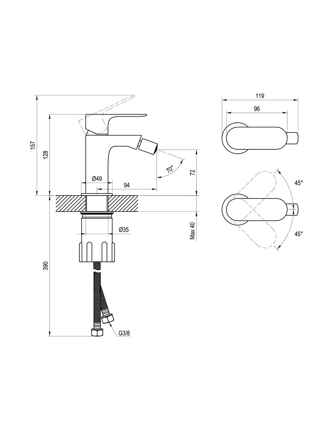 • jungiamosios žarnos: lankstusis 450 mm, skersmuo G3/8, DN6