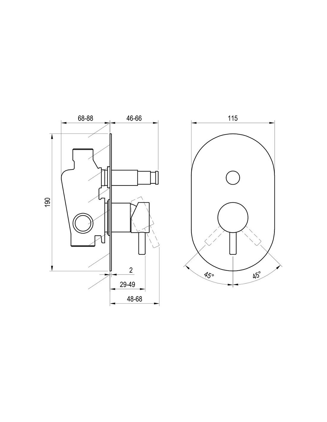 Šis įleidžiamas maišytuvas yra su korpusu ir montuojamas tiesiai į sieną, neskirtas naudoti su R-box.