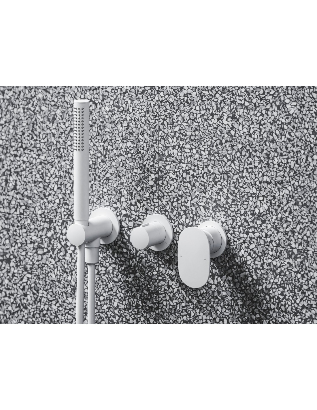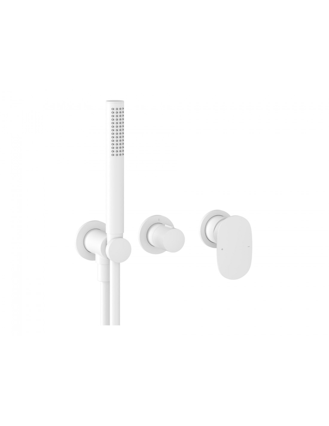 Potinkinis 2 krypčių Spring maišytuvas su dušo komplektu, pilno korpuso. Baltos matinės apdailos.
