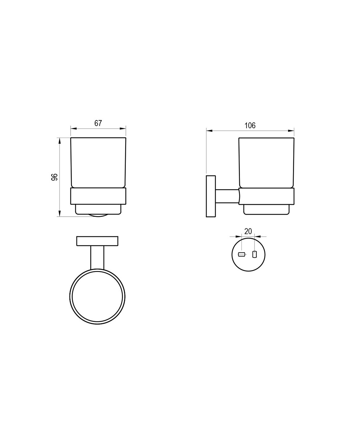 Sieninis stiklinės laikiklis Kona. Matinės baltos spalvos laikiklis su matinioo stiklo stikline.