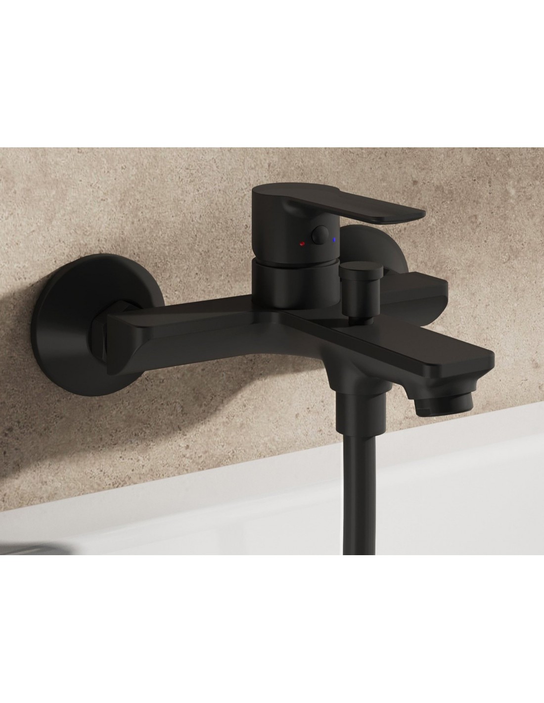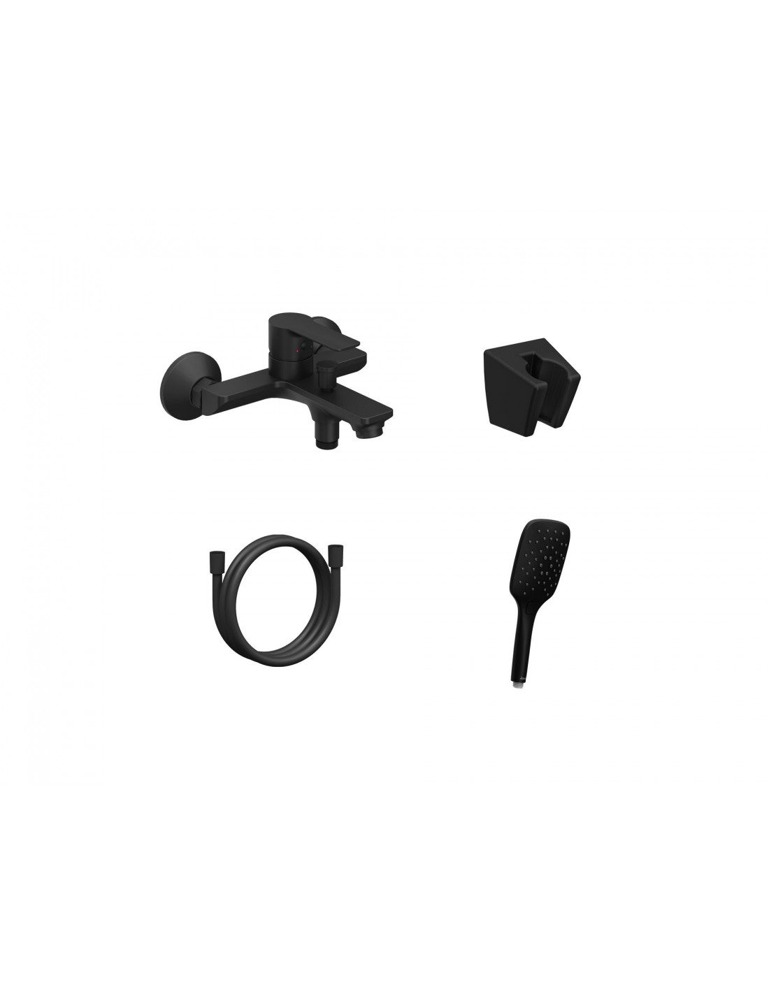 Sieninis vonios maišytuvas Solar su dušo komplektu. Matinės juodos spalvos.