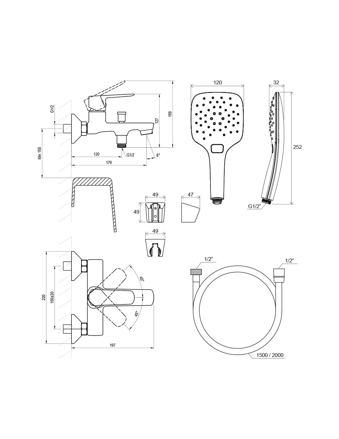 • Tarpašiniai maišytuvo matmenys: 150 mm
