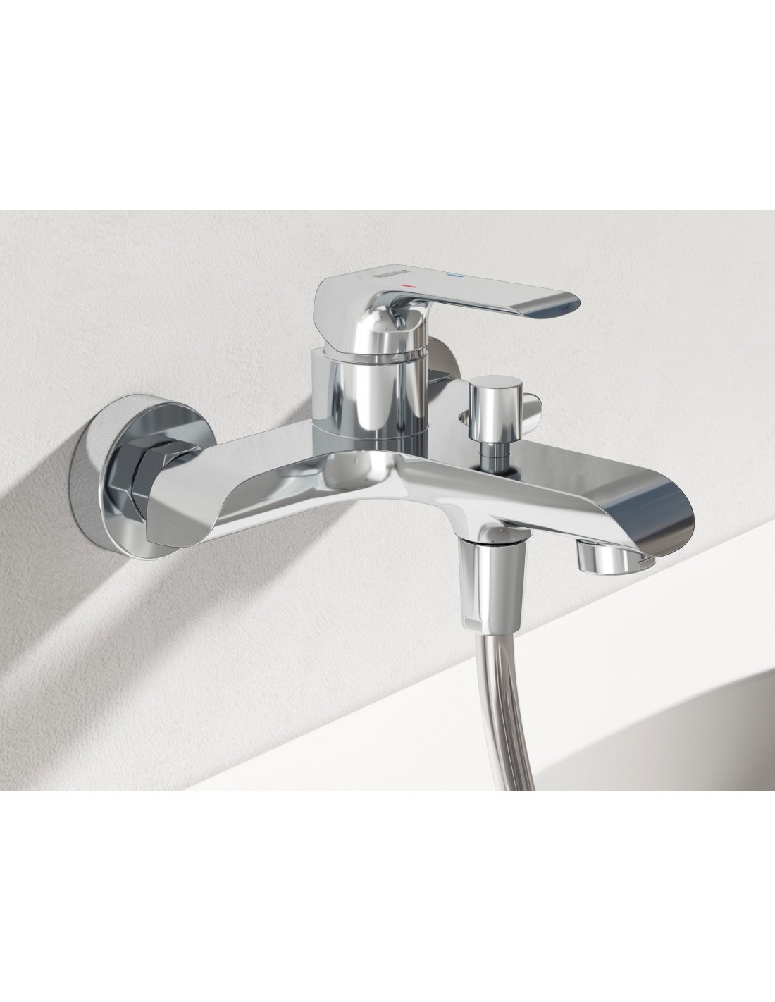 Sieninis vonios maišytuvas Flat su dušo komplektu. Chromo apdaila.