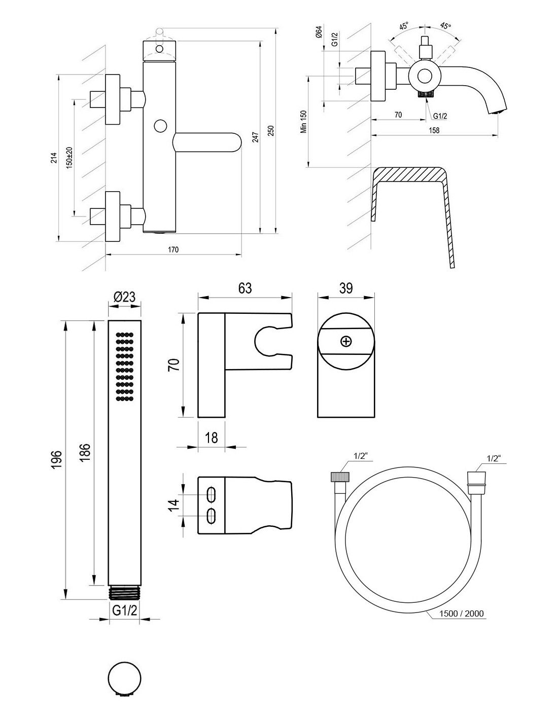 • Tarpašiniai maišytuvo matmenys: 150 mm