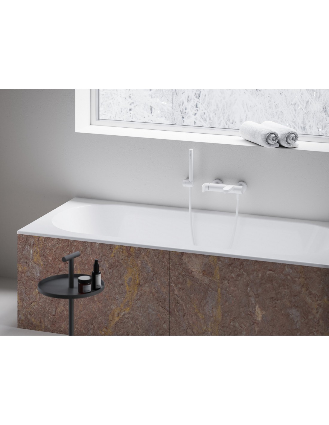Sieninis vonios maišytuvas Eleganta su dušo komplektu. White Velvet apdailos dizainas. Su integruotu aeratoriumi.