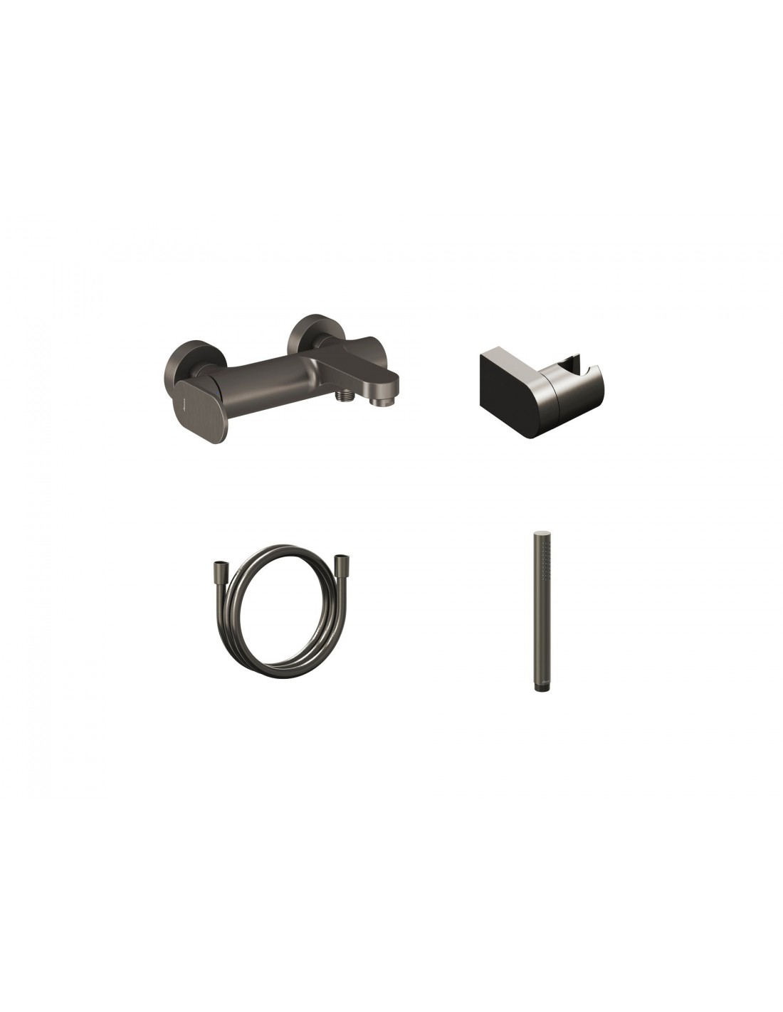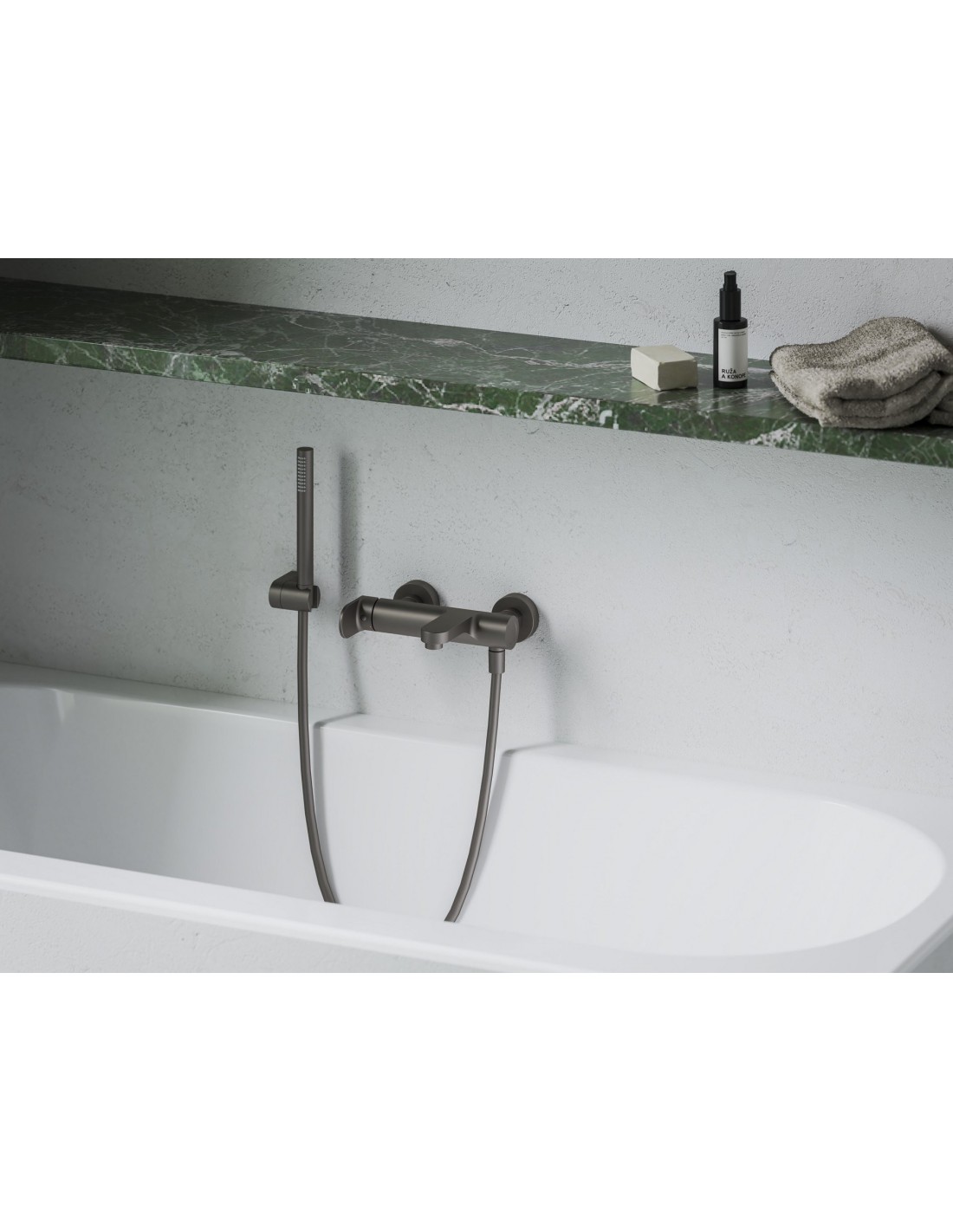 Sieninis vonios maišytuvas Eleganta su dušo komplektu. Šlifuoto grafito apdaila. Su integruotu aeratoriumi.
