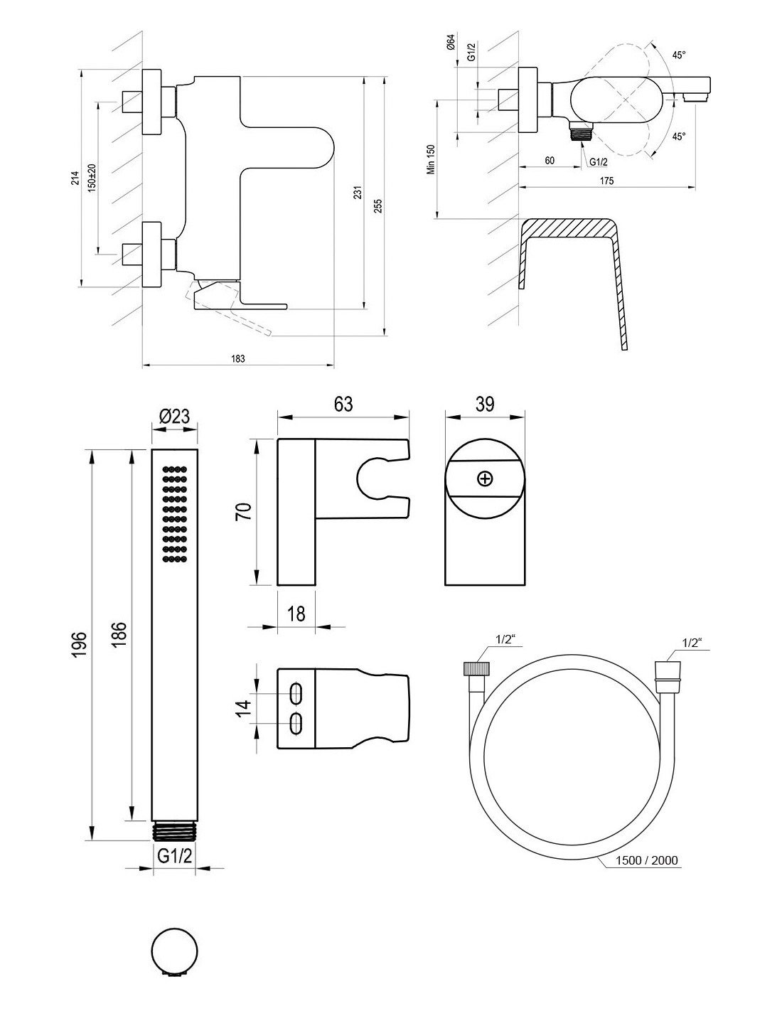 • Tarpašiniai maišytuvo matmenys: 150 mm