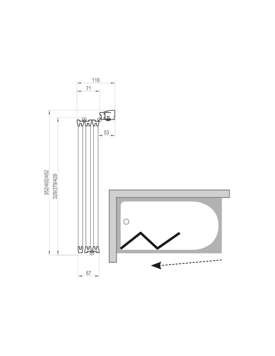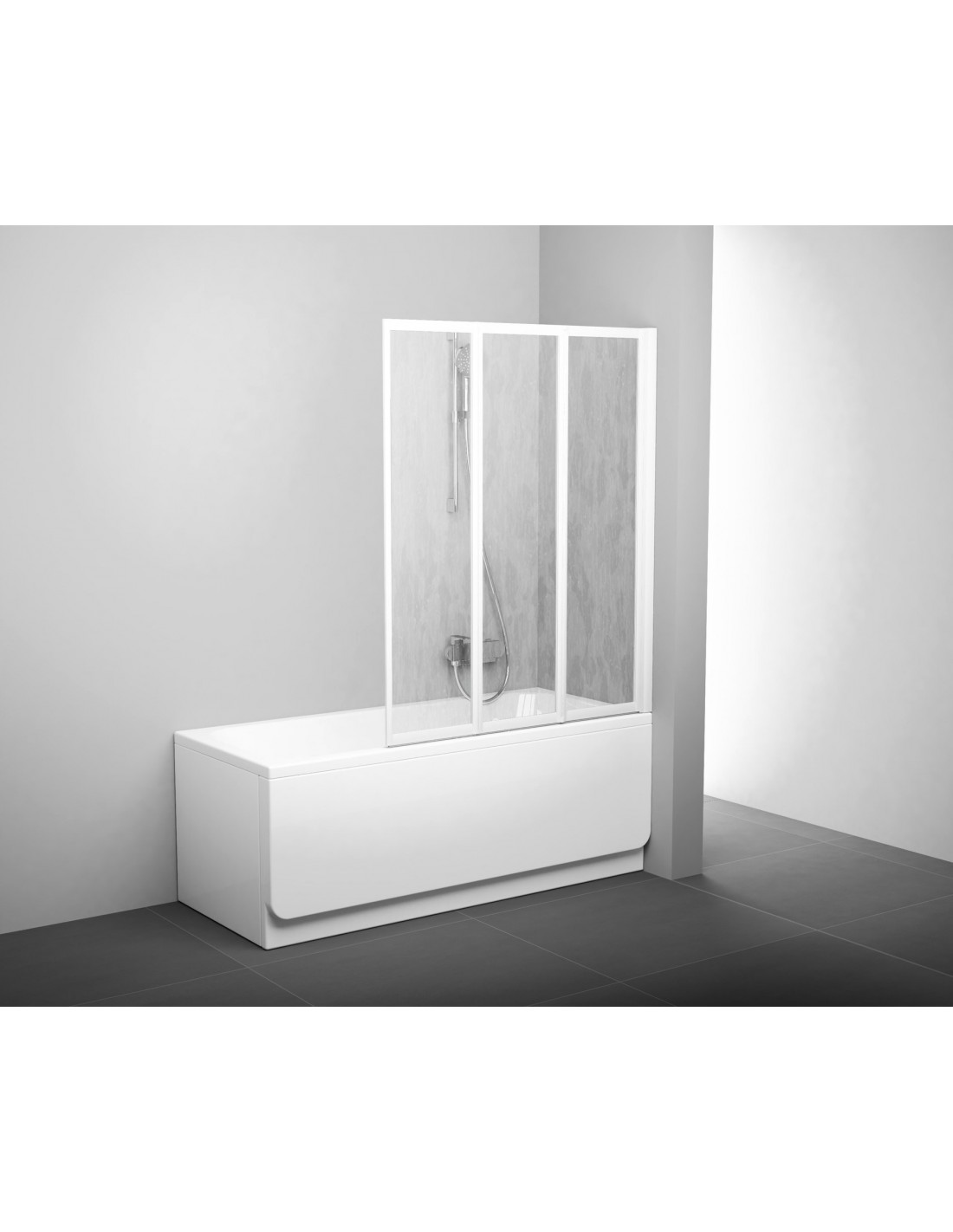 Trijų dalių sulankstoma vonios sienelė asimetrinei voniai BeHappy II ir stačiakampėms vonioms. Baltos spalvos su nepermatomo plastiko užpildu ir Rain dekoru. Gaminys gali būti naudojamas tiek kairėje, tiek dešinėje pusėje.