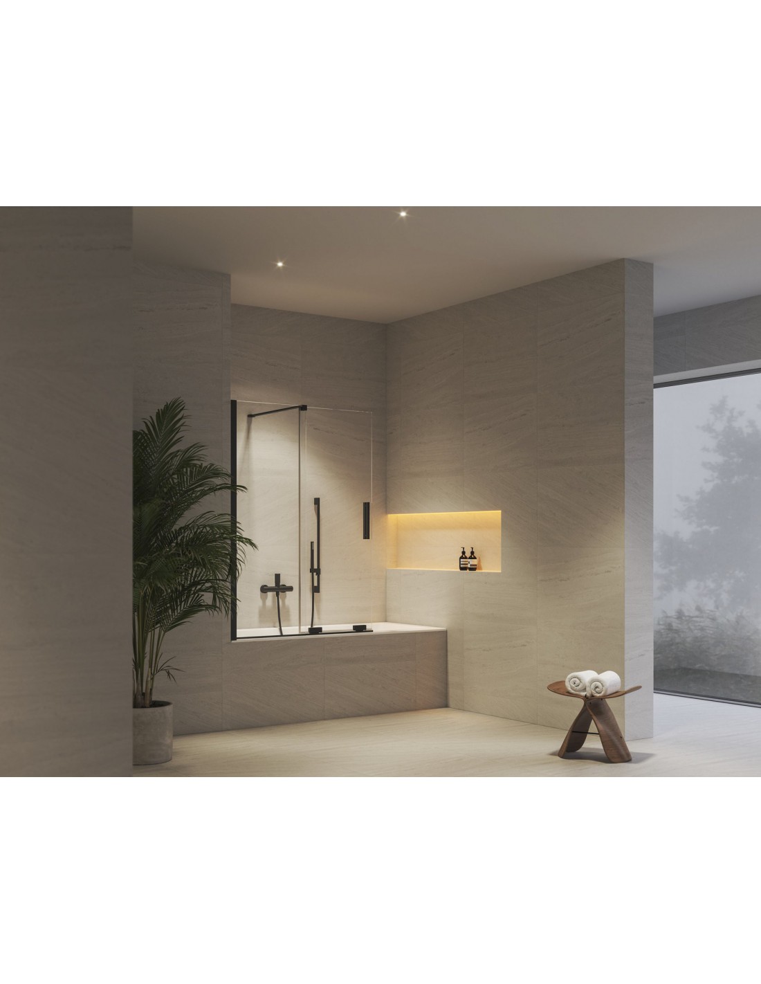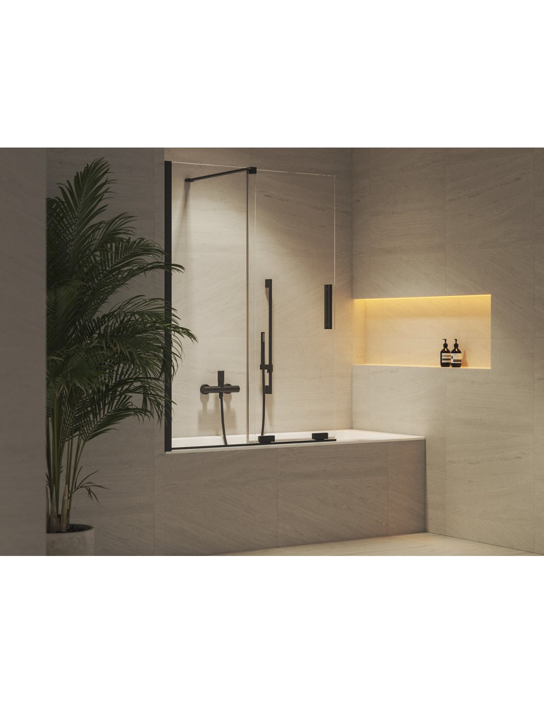 Dviejų dalių stumdoma vonios sienelė stačiakampėms vonioms. Juodos spalvos profilis su skaidraus stiklo užpildu, padengtu apsauginiu sluoksniu Ravak AntiCalc®. Pasukamas gaminys, galimas kairinis ir dešininis variantas.