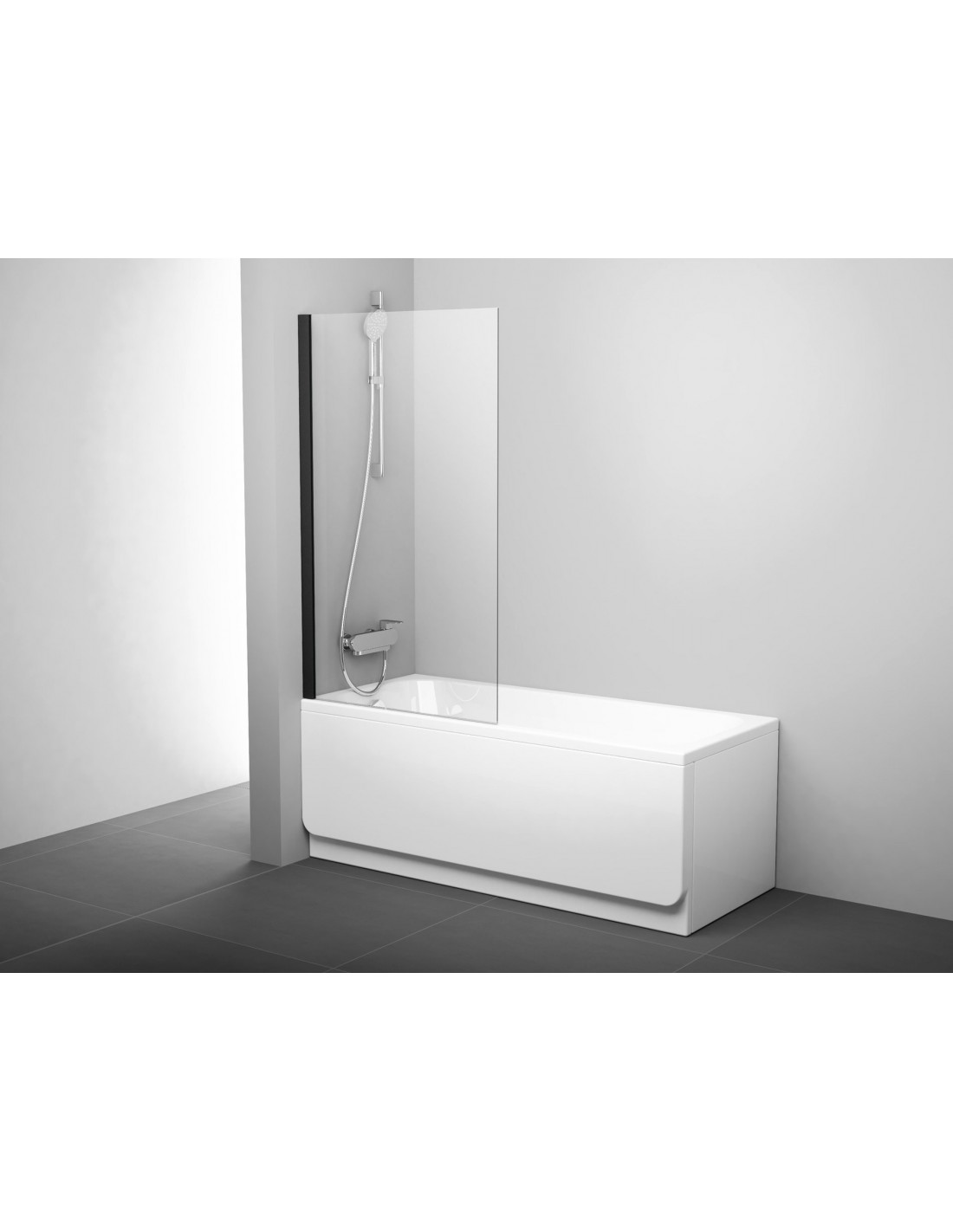 Vienos dalies stacionari vonios sienelė stačiakampėms vonioms. Sienelė prie sienos sandarinama vertikaliu, juodos apdailos profiliu. Stiklas padengtas apsauginiu sluoksniu Ravak AntiCalc®. Gaminys gali būti naudojamas tiek kairėje, tiek dešinėje pusėje.
