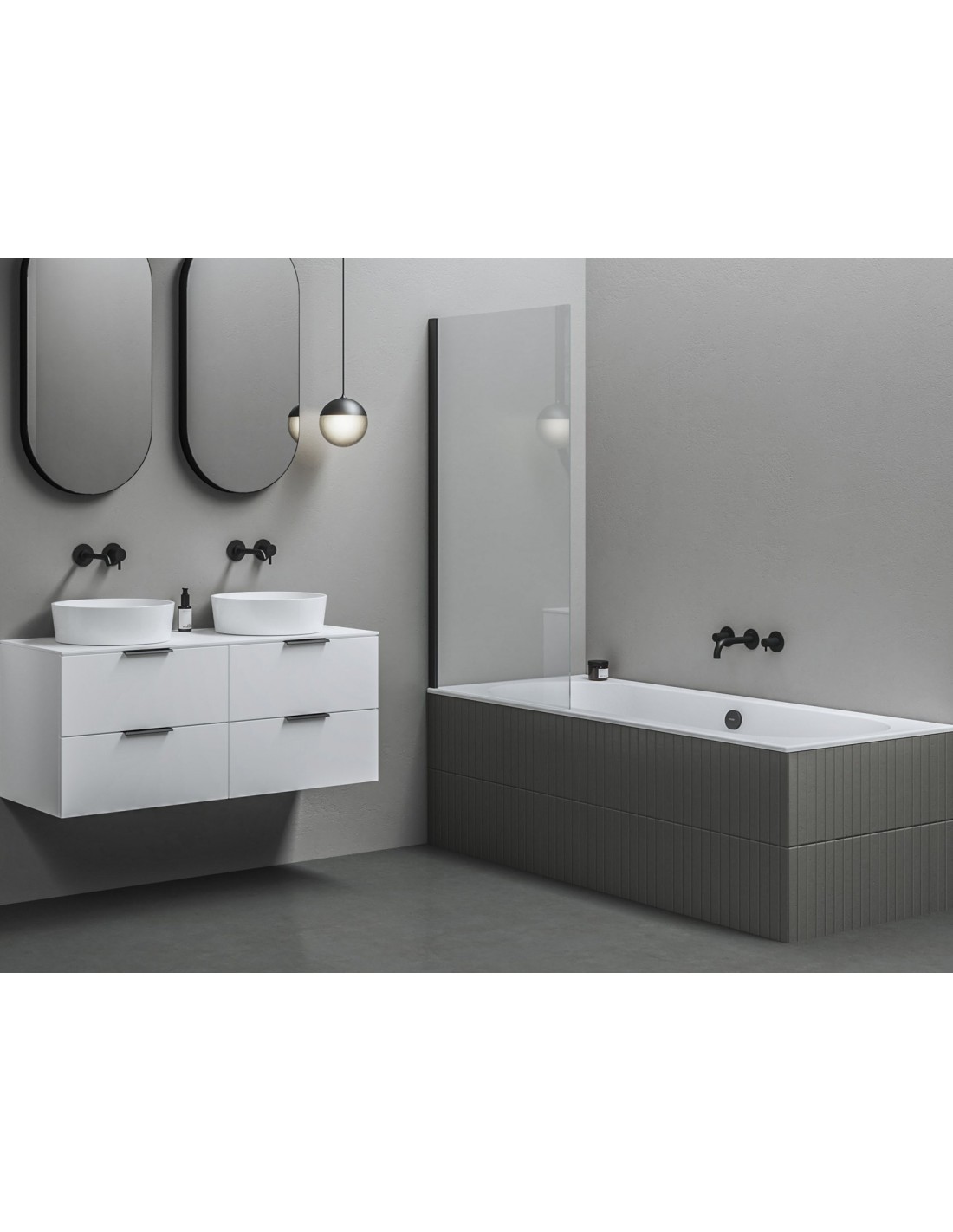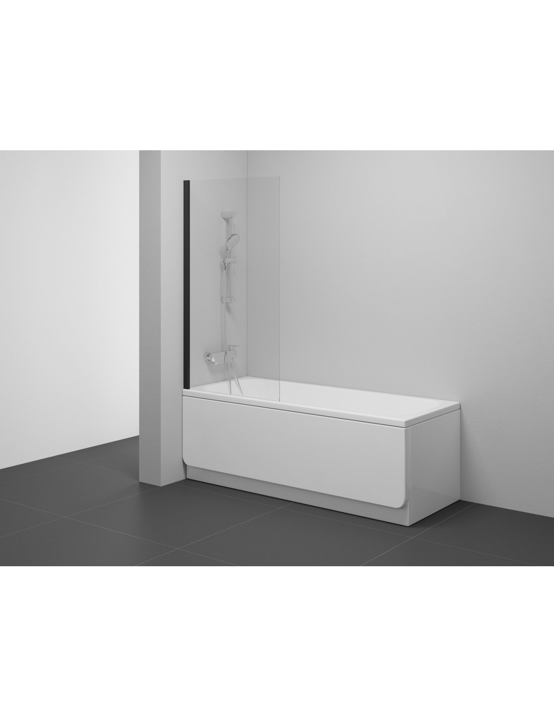 Vienos dalies stacionari vonios sienelė stačiakampėms vonioms. Sienelė prie sienos sandarinama vertikaliu, juodos apdailos profiliu. Stiklas padengtas apsauginiu sluoksniu Ravak AntiCalc®. Gaminys gali būti naudojamas tiek kairėje, tiek dešinėje pusėje.