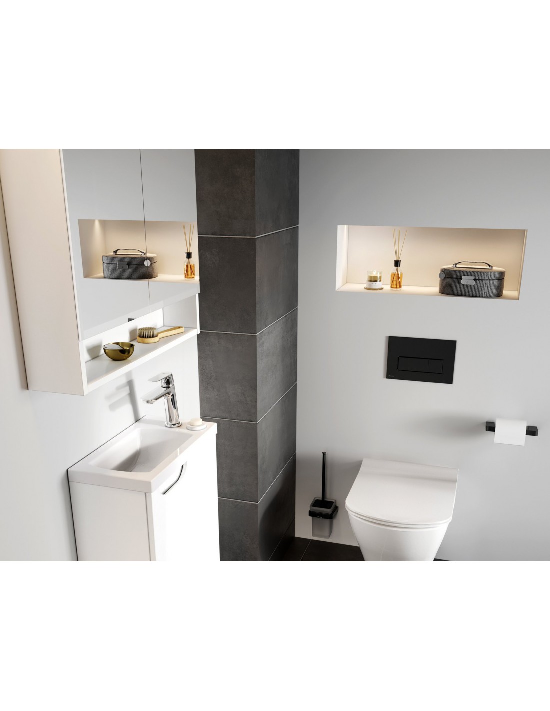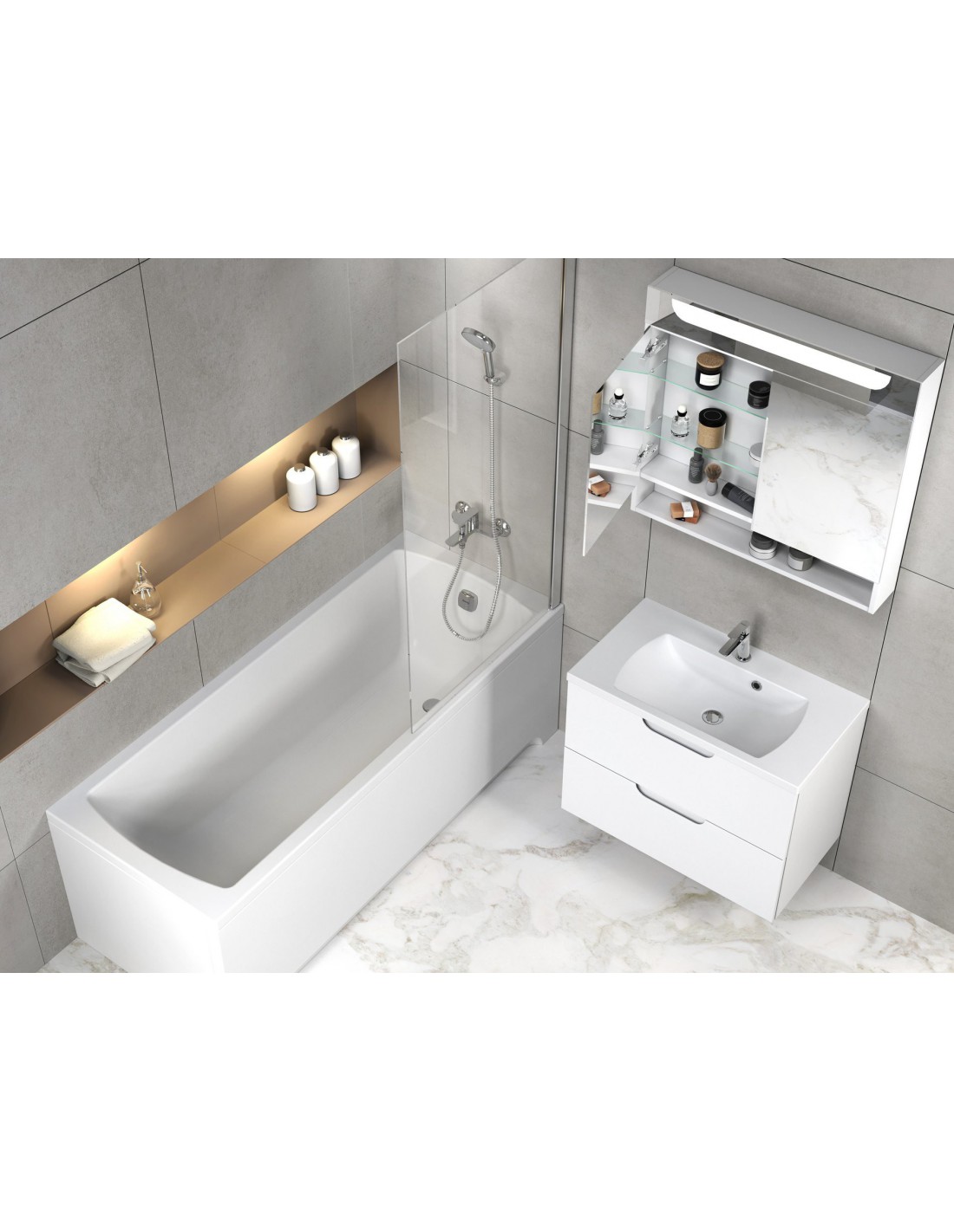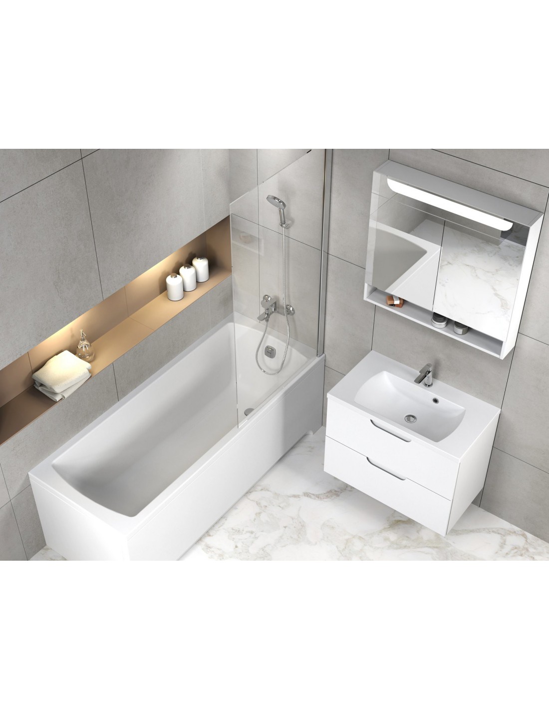 Visapusiškam vonios kambario sprendimui ir dizaino harmonijai veidrodinę spintelę rekomenduojame derinti su kitais Classic II koncepcijos gaminiais.